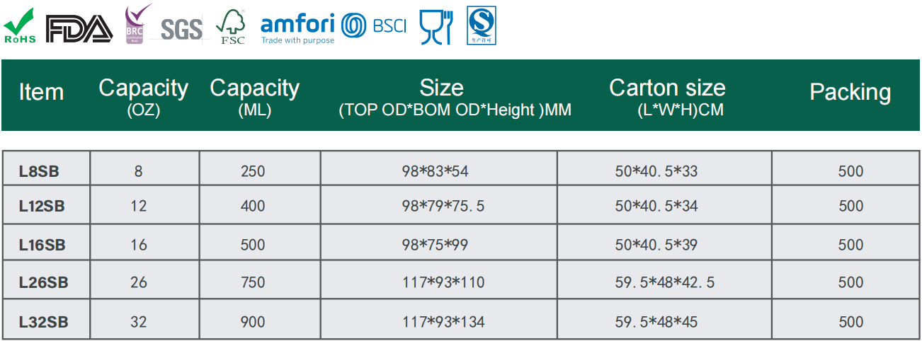 カスタマイズサイズ:8oz /12oz /16oz /24oz /26oz /32oz